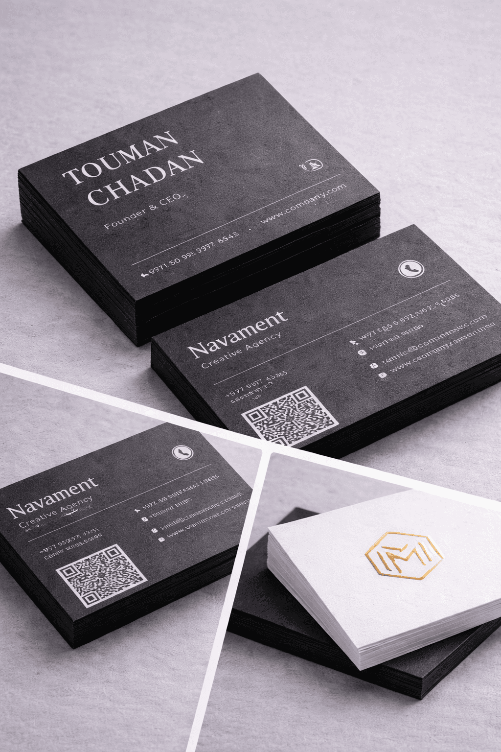 Serving startups, SMEs, and large enterprises across Dubai, we combine advanced printing technology with expert craftsmanship to deliver exceptional business cards. From classic designs to luxury finishes, we ensure every card represents your business with confidence and clarity.